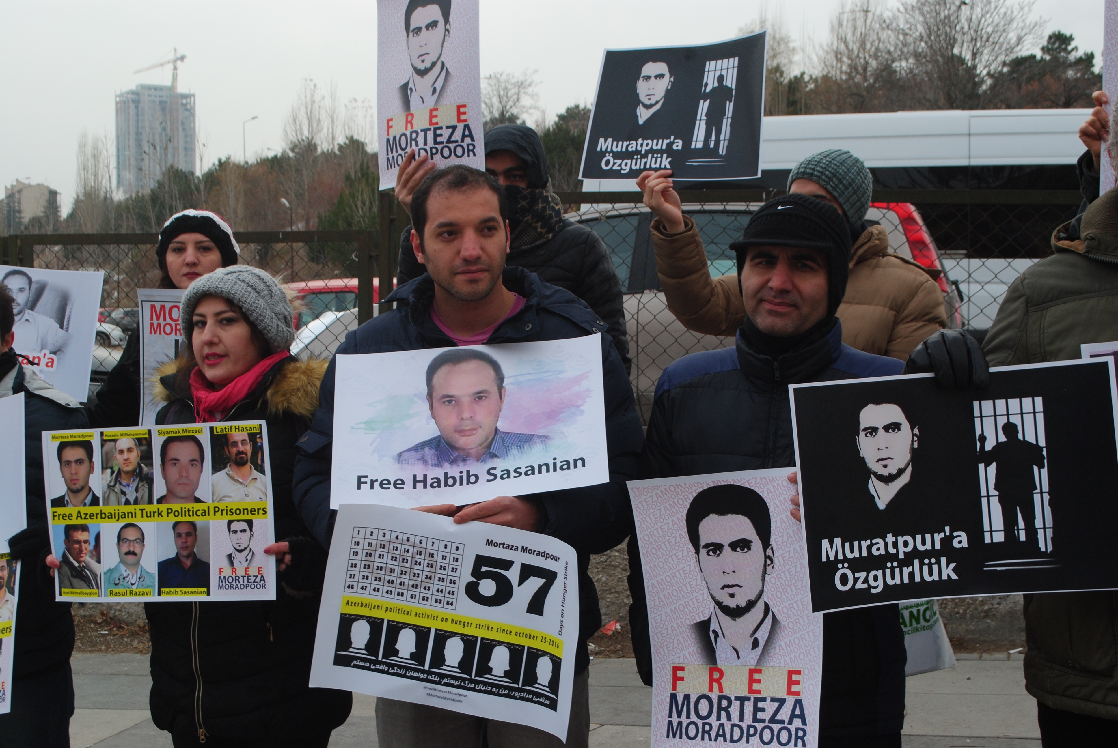 جمعی از فعالین آزربایجانی ساکن تورکیه در مقابل ساختمان مرکزی سازمان ملل در شهر آنکارا پایتخت تورکیه در حمایت از اعتصاب غذای مرتضی مرادپور و سایر زندانیان سیاسی آزربایجانی اقدام به تجمع مسالمت آمیز نمودند. شرکتکنندگان در این تجمع سکوت با حمل تصاویر مرتضی مرادپور و سایر زندانیان سیاسی آزربایجانجنوبی خواستار توجه بیشتر سازمان ملل و دیگر نهادهای بین المللی حقوقبشر به وضعیت این زندانیان گشتند. شرکتکنندگان در این تجمع با حمل تصاویر مرتبط با اعتصاب غذای مرتضی مرادپور به محکوم نمودن بیاعتنایی مسئولین قوه قضائیه جمهوری اسلامی ایران و نهادهای امنیتی در خصوص خطر جانی این زندانی سیاسی که بیش از ۵۷ روز است در اعتصاب غذا می باشد پرداختند.