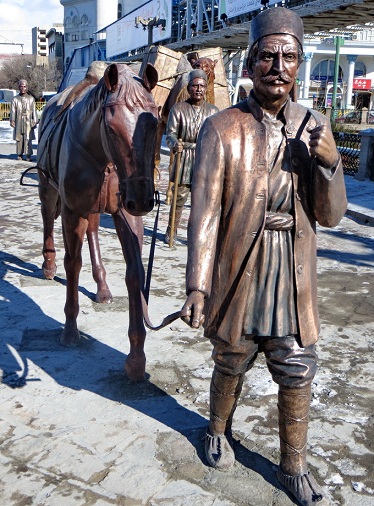 با حضور جمعی از هنرمندان و شهروندان، مجسمه های "ساربان تاجر تبریزی" بر روی پل تاریخی قاری (قاری کؤرپوسو) رونمایی شد.