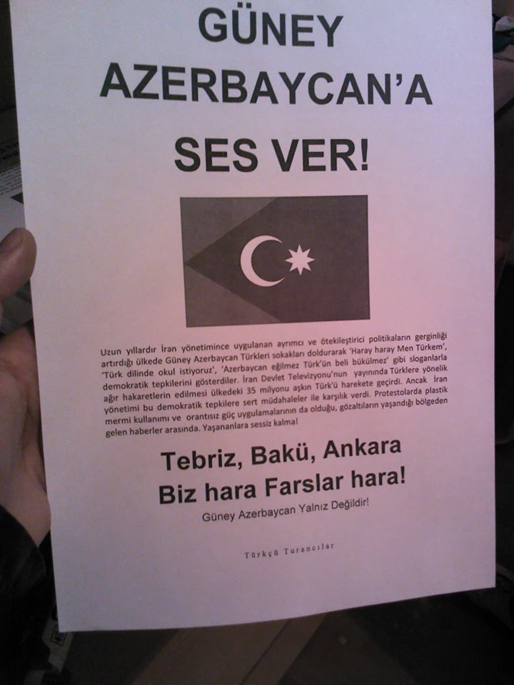 فعالان مدنی تشکیلات "گنج نیهال آتسیزچیلار" صدها اعلامیه با مضمون ''Güney Azerbaycana Ses Ver" با ''آزربایجان جنوبی هم صدا شو" در سطح شهر کایسری ( آناتولی مرکزی) پخش و نصب نمودند.