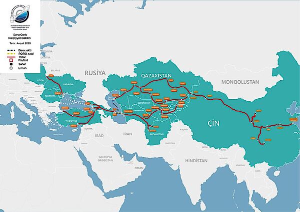 این کریدور همچنین بخشی از "ابتکار کمربند و جاده" چین است و به تقویت روابط تجاری بین اروپا و آسیا کمک میکند. در چارچوب پروژه تراسیکا TRACECA (کریدور حملونقل اروپا-قفقاز-آسیا)، آزربایجان روابط تجاری خود را هم با اتحادیه اروپا و هم با کشورهای تورکستان گسترش میدهد.
