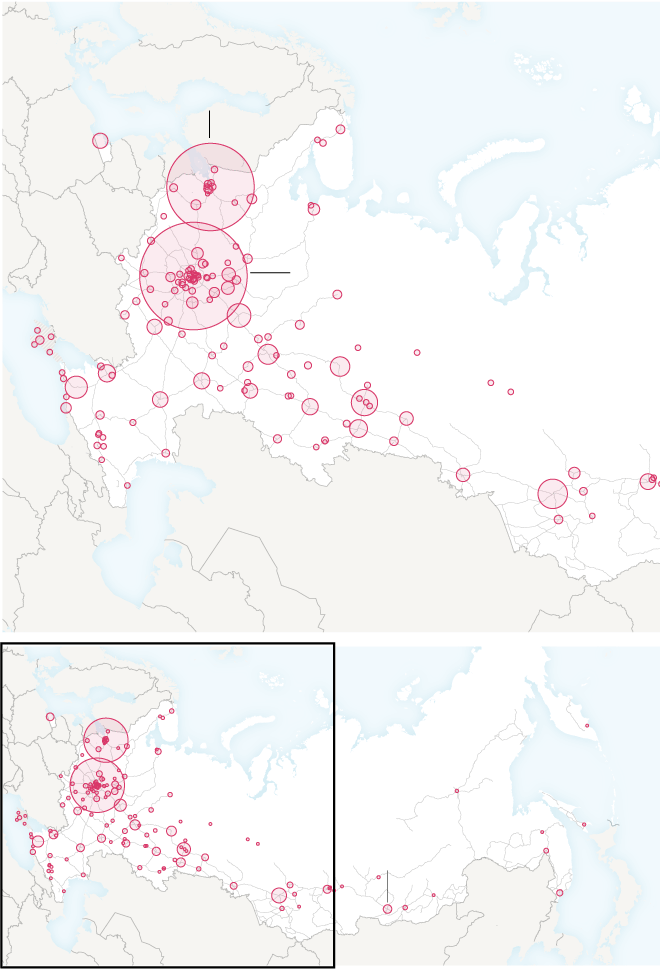 علیرغم تمامی محدودیتها و خفقان در روسیه، روز یکشنبه شاهد بالاترین آمار بازداشت معترضان در یک روز اخیر بود. بر اساس گزارش OVD-Info، یک گروه فعال که اعتراضات در روسیه را دنبال میکند، بیش از ۵ هزار و ۳۰۰ معترض در ۷۴ شهر روسیه بازداشت شدند. مردم معترض شعار "نه به جنگ!" می دادند و بیشتر دستگیرشدگان از شهرهای مسکو و سنپترزبورگ هستند.