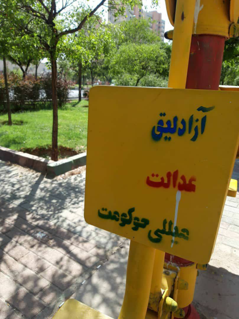 شعار استراتژیک فعالین ملی آزربایجان «آزادلیق، عدالت، میللی حوکومت» با رنگهای پرچم آزربایجان در خیابانهای تبریز نقش بست.