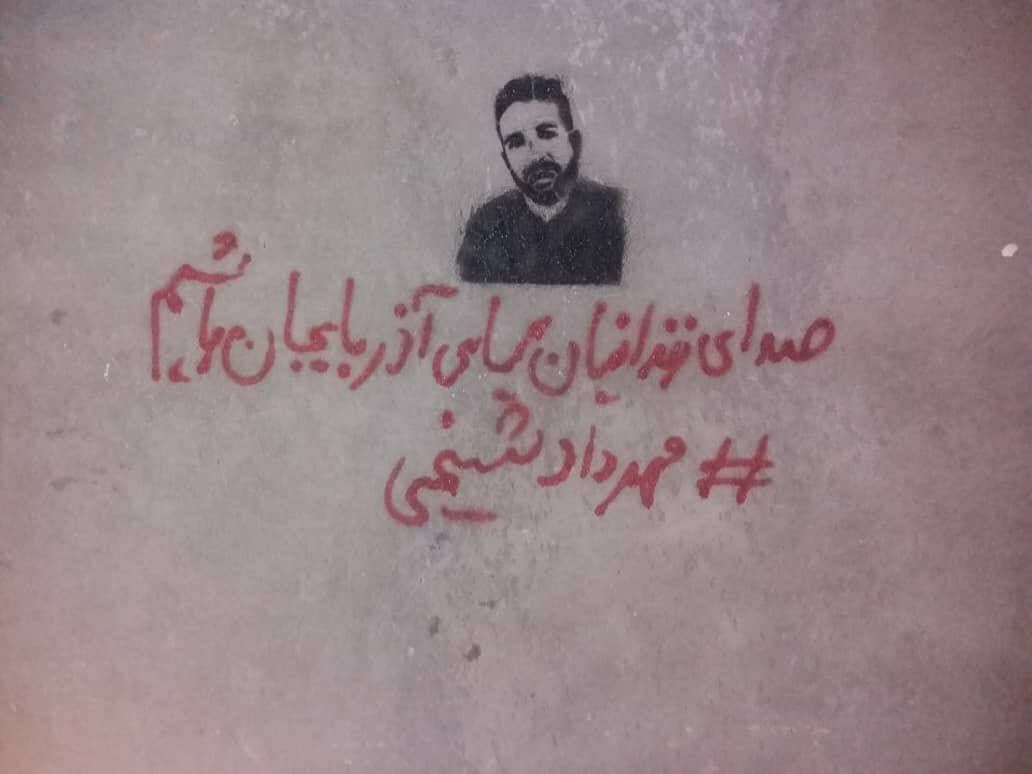 روز جمعه ۷ خرداد ماه ۱۴۰۰ فعالین ملی مدنی آذربایجانی در اردبیل با ثبت گرافیتی چهره مهرداد شیخی زندانی سیاسی آذربایجانی محبوس در بند سلامت زندان مرکزی اردبیل اعتراض خود را به مسئولین زندان نسبت به بازداشت ناعادلانه و سیاستهای اعمال شده در قبال این فعال آذربایجانی اعلام داشتند.