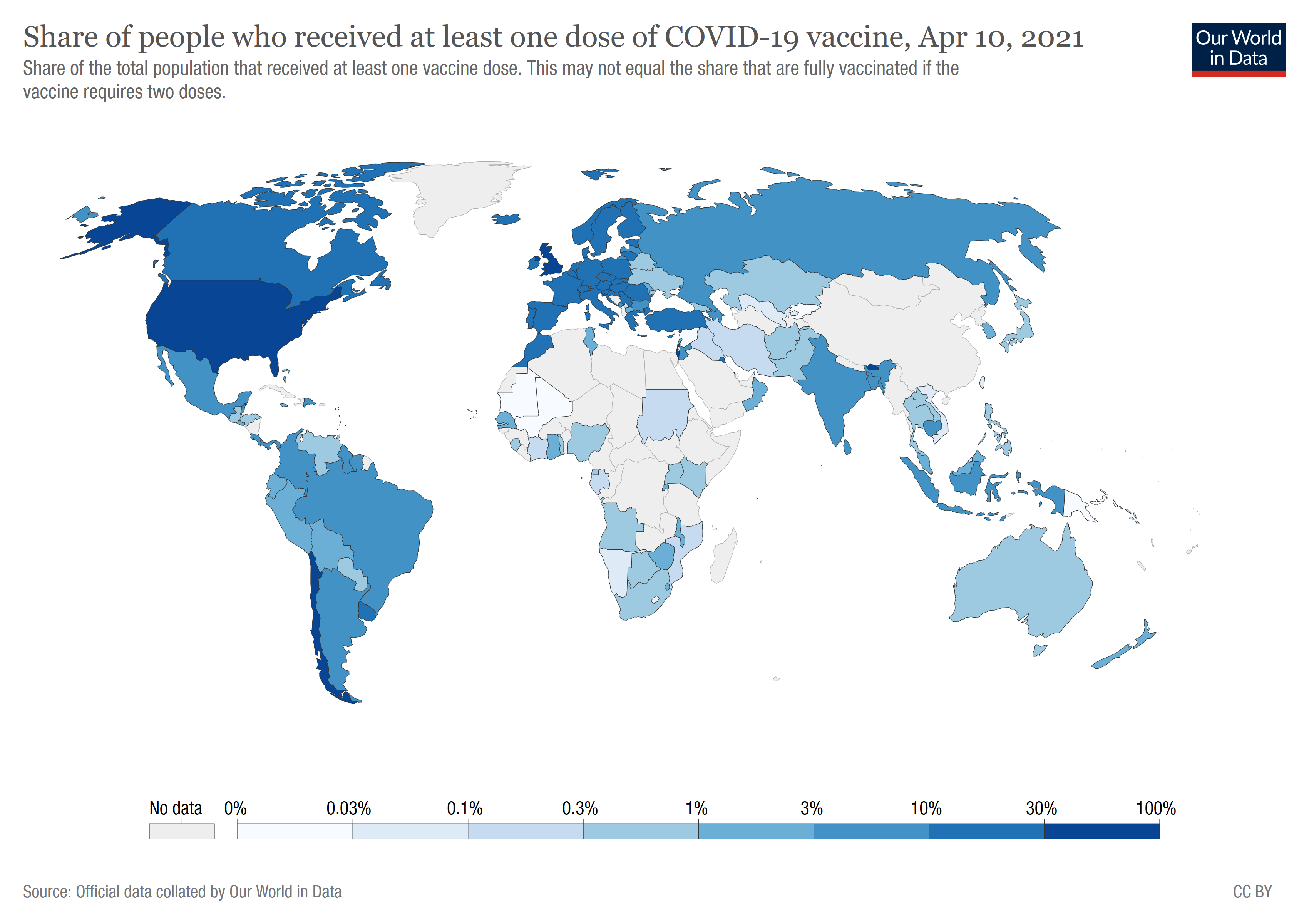 در ایالات متحده آمریکا، تاکنون ۱۵۴ میلیون دز واکسن تزریق شده است و در صورت ادامه این روند - تزریق حدود ۳ میلیون دز واکسن در روز- ۴ ماه طول خواهد کشید تا ۷۵ درصد از جمعیت این کشور واکسینه شوند.