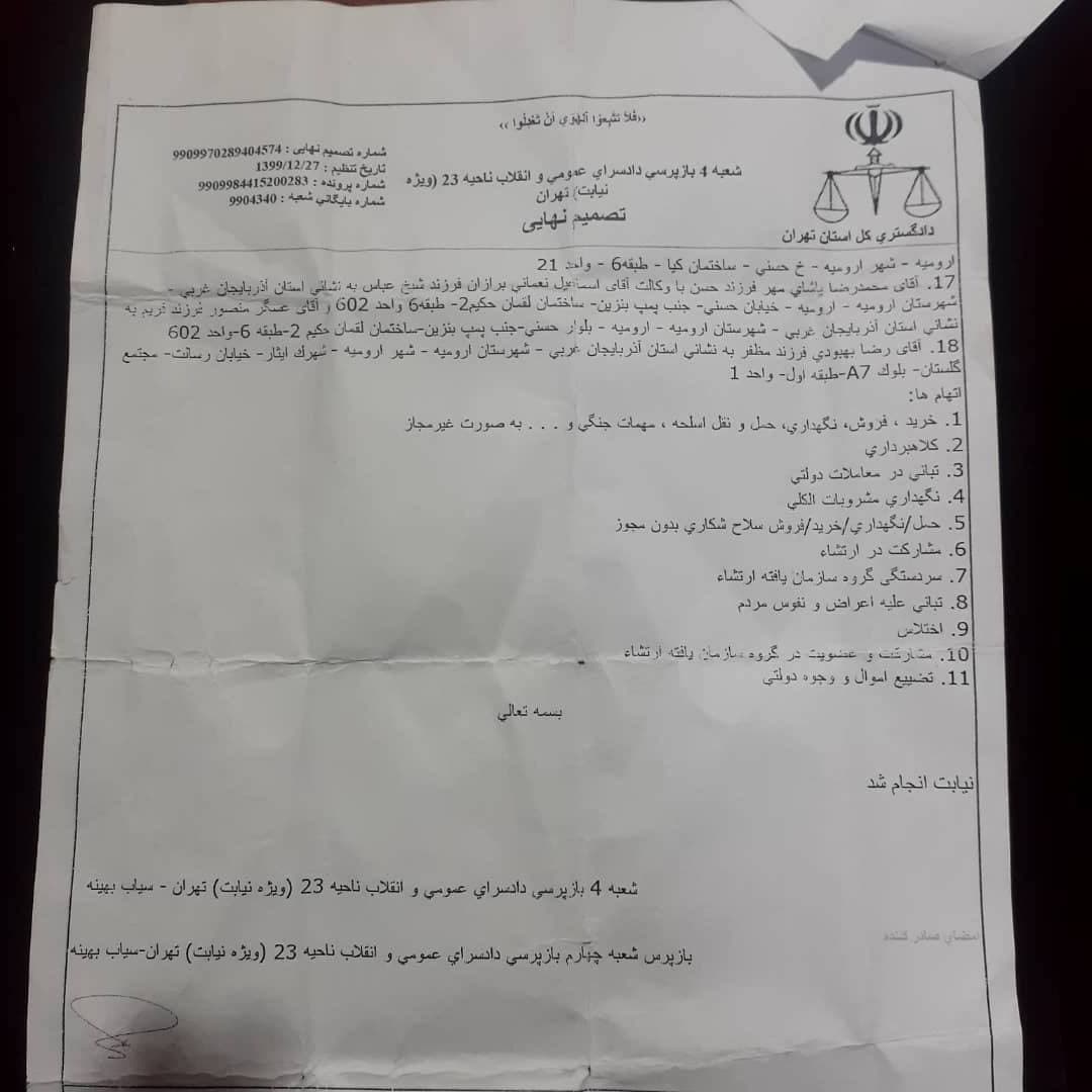 بر اساس اخبار منتشرشده در فضای مجازی، محمد حضرت پور شهردار سابق اورمیه و برخی از مدیران، معاونان و همکاران وی در شهرداری این شهر از سوی بازپرسی دادسرای عمومی و انقلاب تهران به اتهام خرید، فروش، نگهداری و حملونقل اسلحه، اختلاس، ارتشا، کلاهبرداری، تبانی در معاملات دولتی و ... تفهیم اتهام شدهاند.