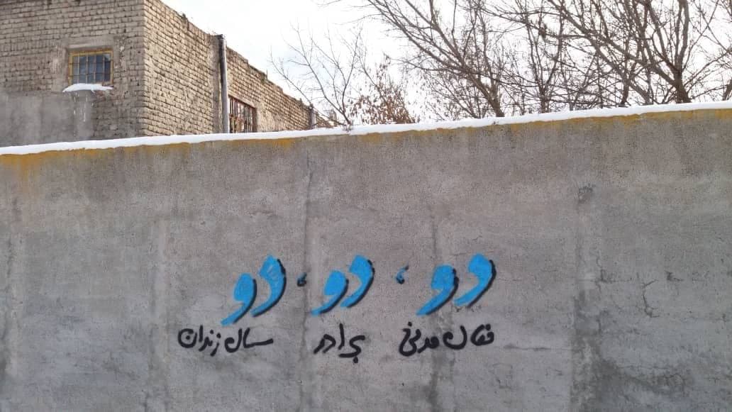 عنوان متنی است اعتراضی که سطح یکی از دیوارهای مرکز شهر اردبیل را در قالب گرافیتی مزین کرده است.
