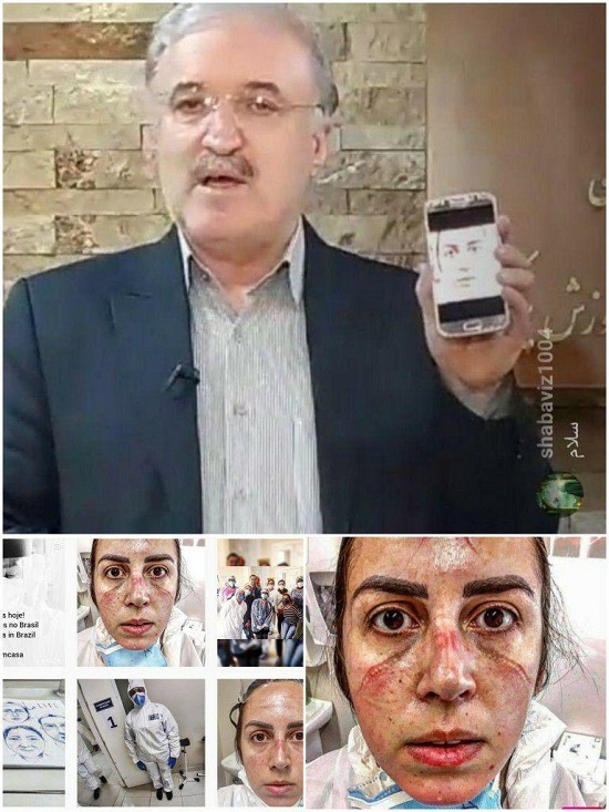 سعید نمکی وزیر بهداشت در لایو اینستاگرامی خود با نشان دادن «صورت زخمی یک کادر درمانی» با تشکر از زحمات آنها از مردم خواست تا با رعایت کردن نکات بهداشتی در مقابله با ویروس کرونا بار روی سیستم درمانی ایران را کاهش دهند. تصویری که وزیر نشان میدهد یک خانم پرستار برزیلی به نام «آماندا» است و ارتباطی با کادر درمانی کشور ندارد.