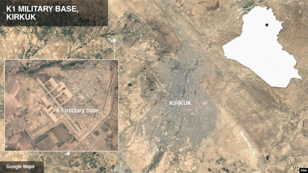 پایگاه نظامی کی-۱ که در ۱۵ کیلومتری شمالغربی کرکوک در شمال عراق واقع شده، میزبان نیروهای نظامی آمریکایی در کنار نیروهای نظامی عراق و پلیس فدرال این کشور و همچنین سرویسهای ضدتروریستی است.
