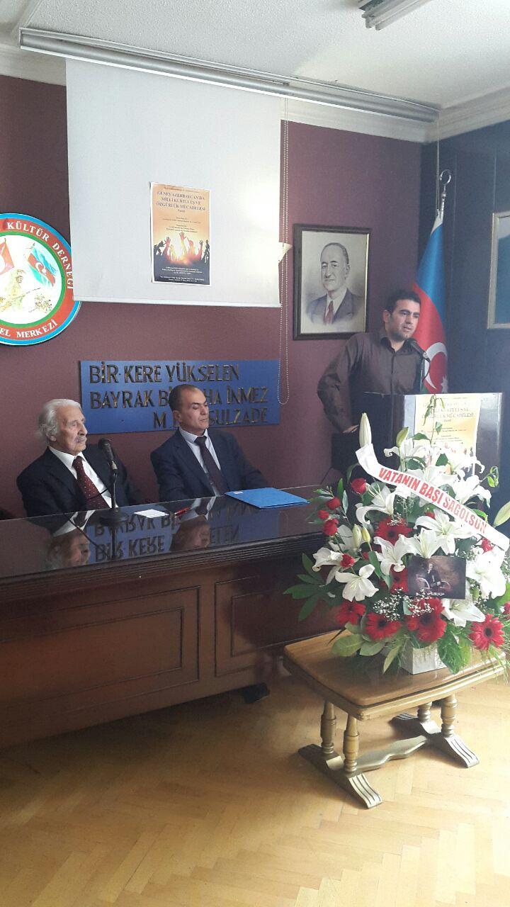 در این کنفرانس که با مدیریت جمیل اونال رئیس انجمن فرهنگی آزربایجان در آنکارا برگزار شد محمود بیلگین سخنگوی حزب دموکرات آزربایجان جنوبی و ابراهیم رمضانی کارشناس مرکز مطالعاتی تبریز در رابطه با موضوعات روز حرکت ملی آزربایجان جنوبی به ایراد سخنرانی پرداختند.