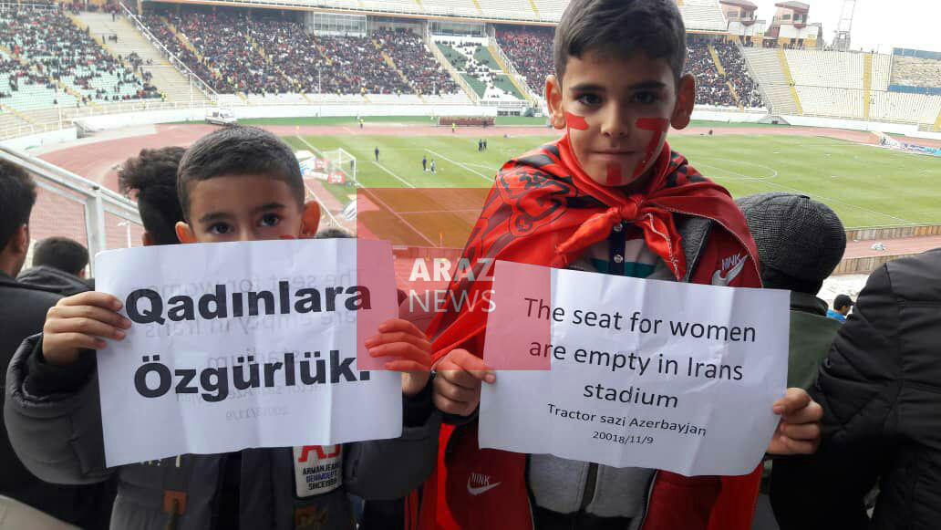 به گزارش آرازنیوز، هواداران تیم فوتبال تراختور در بازی امروز ذوبآهن و تراختور آزربایجان که در ورزشگاه سهند تبریز در حال برگزاری است، با در دستن گرفتن پلاکاردهایی خواستار رفع محدودیت از ورود زنان به ورزشگاه شدند. در تصاویری که به به دست آرازنیوز رسیده است در یکی از این پلاکاردها به زبان انگلیسی نوشته «جای زنان در ورزشگاههای ایران خالی است». یکی دیگر از این پلاکاردهایی که در دست کودکان تورک آزربایجانی گرفته شده است به زبان تورکی آزربایجانی نوشته «آزادی برای زنان» درج شده است.