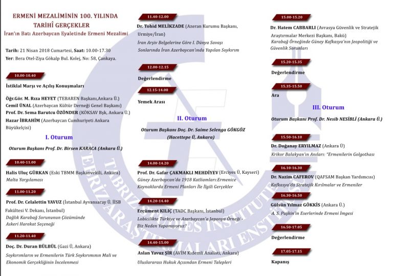 لازم به ذکر است که صد سال پیش گروههای مسلح ارمنی اقدام به قتل عام گسترده ترکان در مناطق آناطولی شرقی، قفقاز و استان آذربایجان غربی در ایران نمودند که در نتیجه این قتل عامها هزاران انسان بی گناه ترک به قتل رسید. بنا به اطلاعات مندرج در منابع آرشیوی در اثنای این قتل عامها تنها در شهرهای اورمیه، سلماس و خوی در استان آذربایجان غربی در ایران بیش از صد هزار نفر کشته شدند. در این همایش قتل عامهای صورت گرفته از سوی ارامنه و موارد مرتبط با آن از زوایای گوناگون مورد بررسی قرار خواهد گرفت.