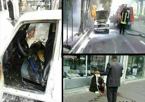 این شخص بعدازآنکه خودروی خود را آتش کشید به روحانیون در پیادهرو حمله کرد و بعدازآن قصد خودسوزی داشته که با دخالت نیروی انتظامی دستگیر میشود.