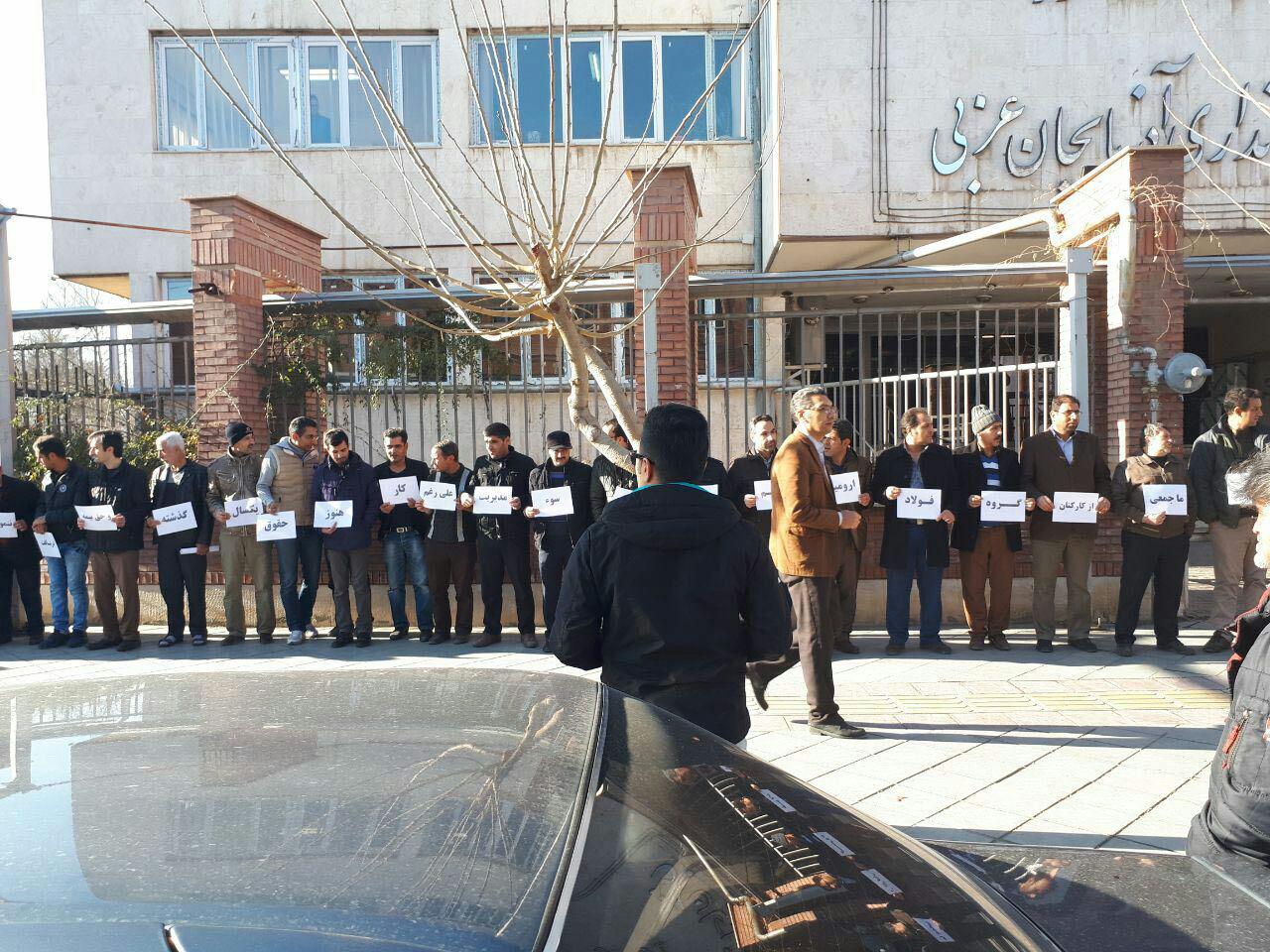 اعتراض کارگران مجتمع فولاد اورمیه مقابل استانداری آزربایجان غربی