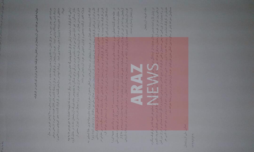 متن بیانیه منتشرشده توسط فعالین ملی آزربایجان :