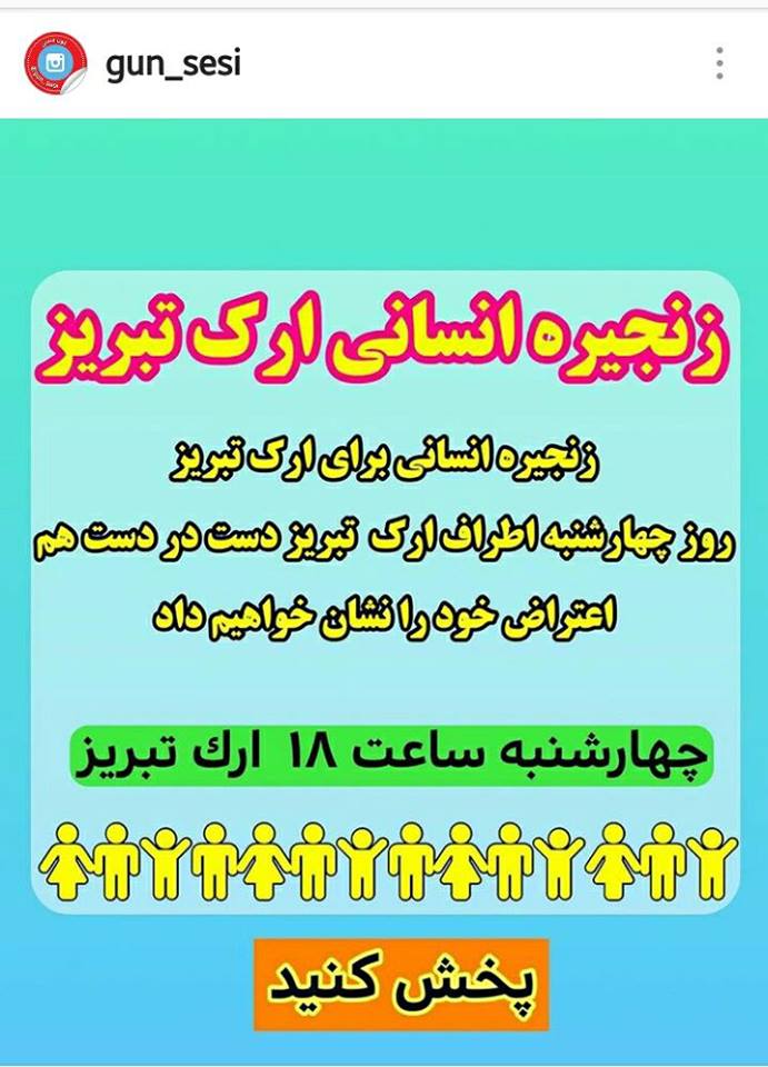 در این فواخوان از مردم آزربایجان خواسته می شود برای جلوگیری از تخریب ارگ تبریز روز چهارشنبه یکم شهریور ساعت ۶ عصر اطراف ارک تبریز زنجیر انسانی تشکیل دهند.