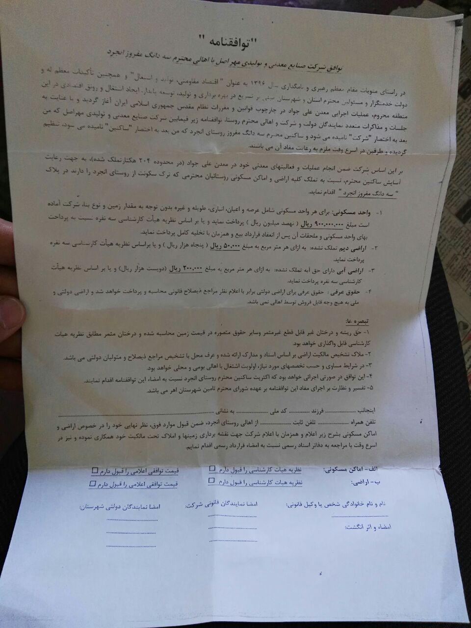 بنابه اطلاع آرازنیوز، امروز دوشنبه ۲۶ خردادماه سال جاری فرمهایی مبنی بر کسب رضایت مردم و اهالی روستای انجرد (انگرد) از فروش زمینهایشان در بین اهالی پخش شد.