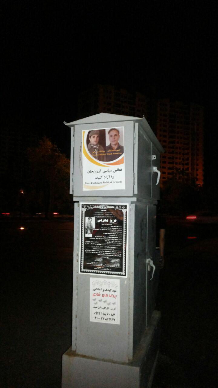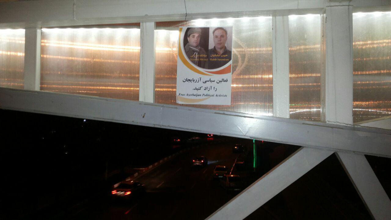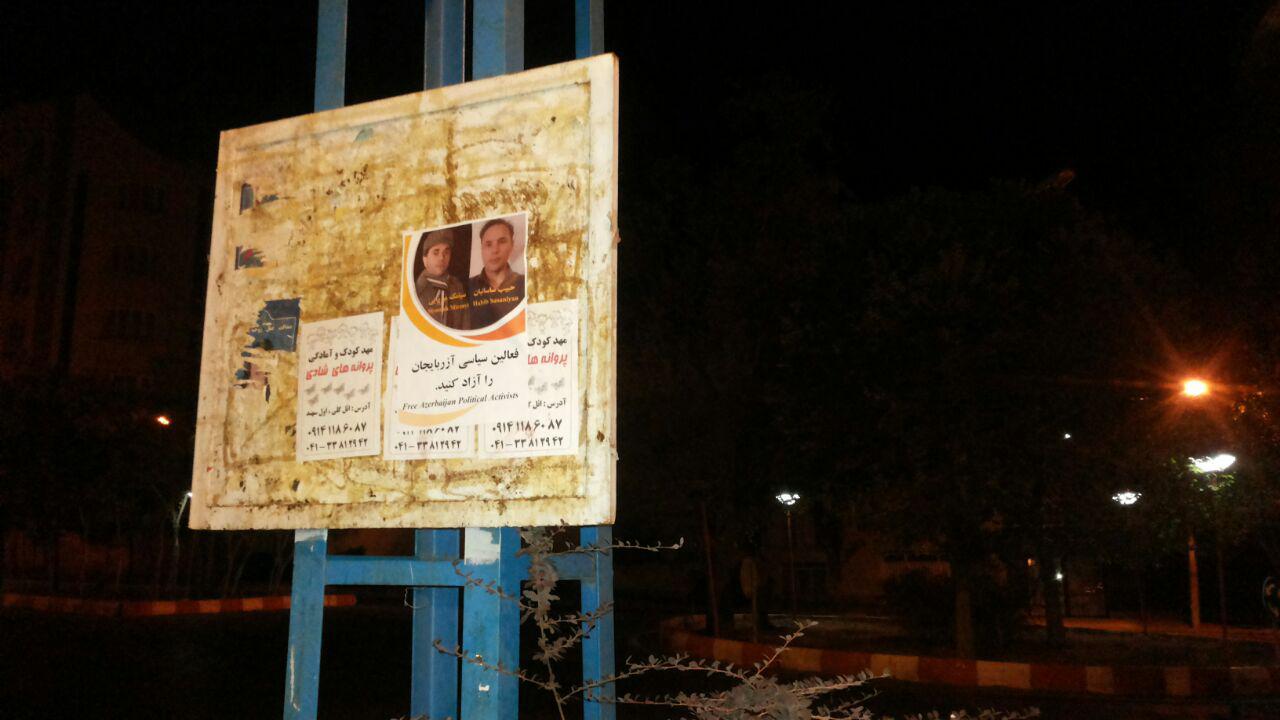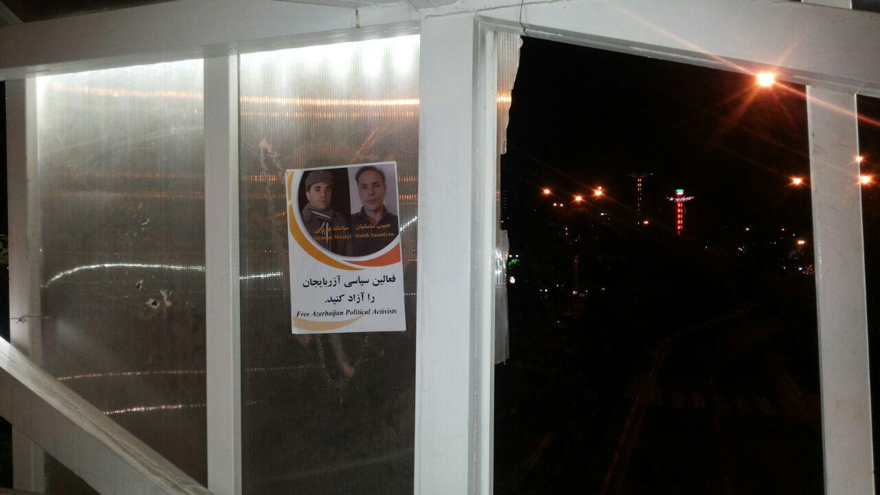 فعالین مدنی آزربایجان با نصب پوستر زندانیان سیاسی آزربایجانی خواهان آزادی بی قید و شرط زندانیان سیاسی آزربایجانی شدند. در این پوسترها تصویر دو تن از زندانیان سیاسی آزربایجان حبیب ساسانیان و سیامک میرزایی نقش بسته و روی آن نوشته فعالین آزربایجانی را آزاد کنید.