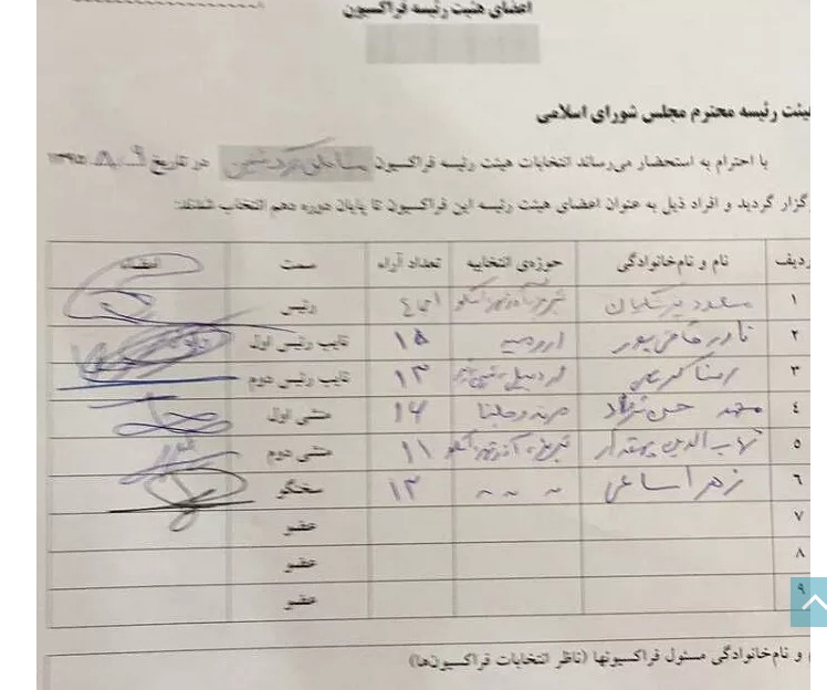صورت جلسه و لیست اعضای هیت رئیسه :