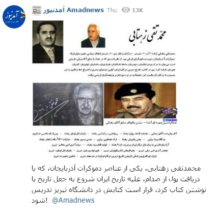 سایت آمدنیوز از سایتهای اقماری اصلاح طلبان جمهوری اسلامی ایران در مطلبی شنیع که در کانال تلگرامی خود منتشر نمود مرحوم پروفسور محمدتقی زهتابی را مورد تحقیر و اهانت قرار داد.