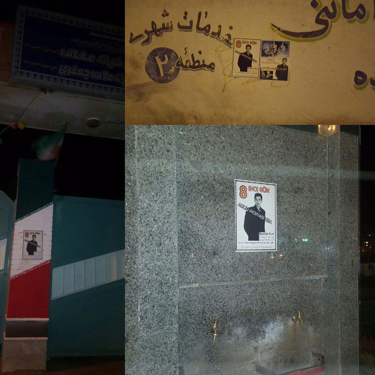 برای آزادی ابراهیم نوری فعال ملی آزربایجان ، پوسترهایی در نقاط مختلف شهر نصب و دیوارنویسی گستردهای صورت گرفت.