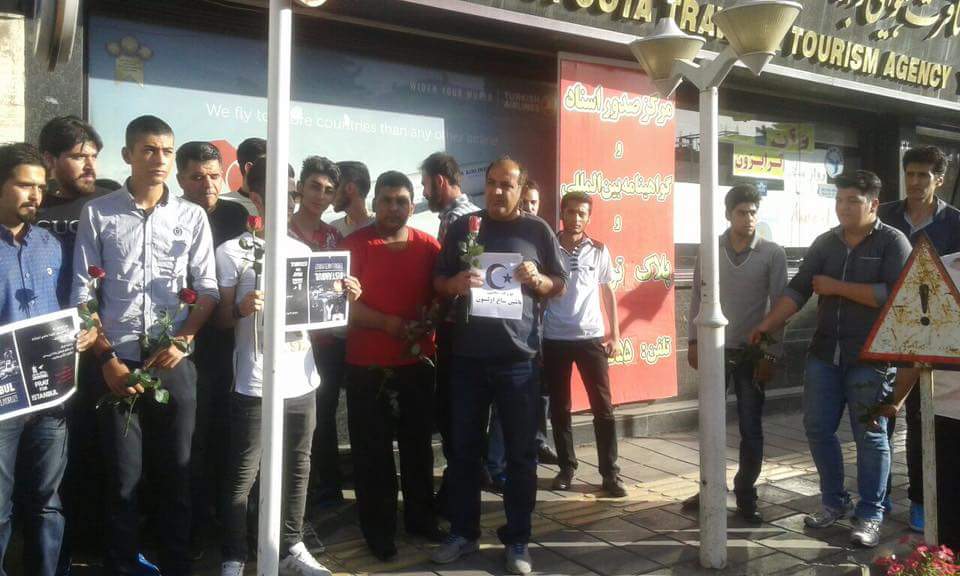 مردم بعد از تجمع آرام در مقابل کنسولگری ترکیه در اورمیه، با گذاشتن شاخه گلهای سرخ مقابل درب کنسولگری، تروریسم را محکوم کردند.
