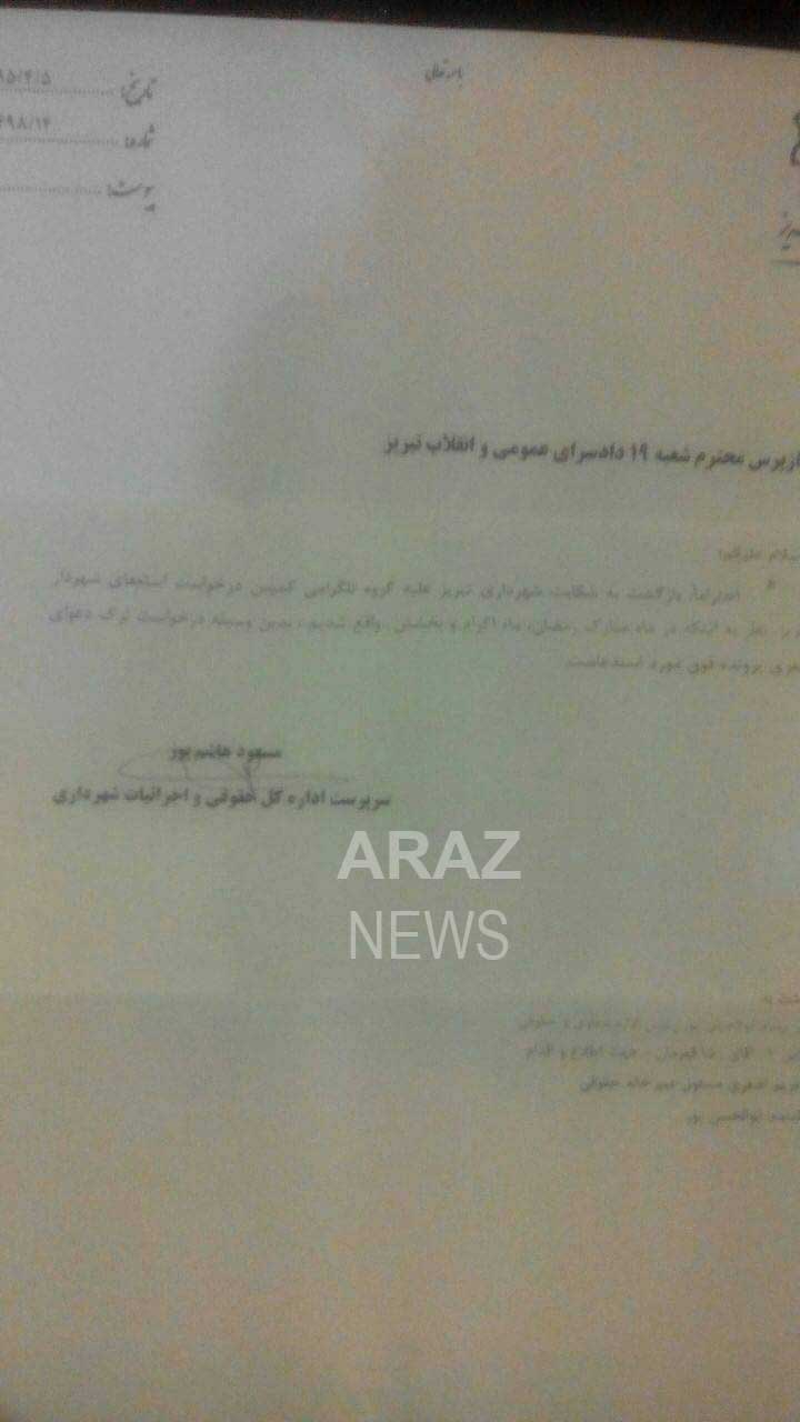 بیشتر بخوانید: شهروندان منتقد تبریزی، با شکایت قضایی شهردار مواجه شدند