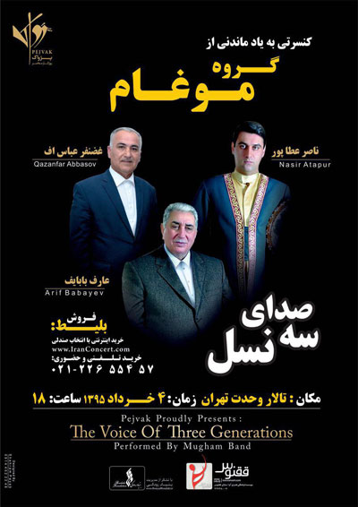 گروه موغام تا کنون بیش از ۵۰ تا کنسرت هم داخل ایران هم خارج اجرا کرد. با این حال مدتی بود که در نظر داشتم در شهرها ی مختلف کشور کنسرت بگذارم. البته تنها موفق شدم در تهران این برنامه را پیاده کنم. در حال حاضر هم این برنامه چیدمان شده و با نام صدای سه نسل آماده اجرا در ۴ خردادماه در تالار وحدت می باشد، ''منتها بنا به دلایلی که بعضا برای خود ما روشن نیست اجازه چنین کنسرتی در شهرستان داده نمی شود.''