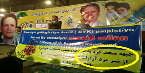 نوشتن متن کردی به الفبای لاتین مورد استفاده در کردستان ترکیه بر روی بنر تبلیغاتی میلان نیز از معماهای نه چندان سخت روزهای انتخابات بود که ماهیت و روابط جریانهای سیاسی بازیگر در غرب آزربایجان را نمایان می کند. اصلاح طلبان و گروههای تروریستی کردی وارد تعامل و به دنبال آن همکاری شده بودند و سعی داشتند هر کدام منافع مشترک خود را در غرب آزربایجان بدست آورند که با هوشیاری و آگاهی ملی مردم آزربایجان و اتحاد و همدلی تمامی معادلات اصلاح طلبان پانفارسیسم و جریانهای نزدیک به گروههای تروریستی منطقه را نقش بر آب کرد. بطوریکه با پیگیری منافع و مطالبات ملی در اورمیه گفتمان اصلاح طلبی به حاشیه رفت و با بسیج و اتحاد مردم اورمیه توانست سکان منافع ملی را در غرب آزربایجان بدست گیرد. بدون شک کسانیکه حکومت ملی آزربایجان در سالهای ۱۳۲۴-۱۳۲۵ را نمی توانند ببینند و با تاریخ و هویت آزربایجان و مطالبات و مبارزات مدنی آن بیگانهاند و یا کسانیکه با شلیک بر سینه جوانان کرد و ترک این سرزمین می خواهند بر طبل حق طلبی بکوبند جایی در آزربایجان نحواهند داشت.