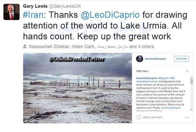 گرى لوییس:«ممنون که توجه جهان را به دریاچه اورمیه جلب کردى»