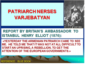 قبل از جنگ های ۱۸۷۸- ۱۸۷۷ روس – عثمانی، ارمنی های عثمانی ابتدا برای کسب خود مختاری و در طولانی مدت برای دست یافتن به استقلال به حرکت در آمدند. این وضعیت در گزارش سفیر انگلیس در استامبول "هنری الیوت" کاملا مشاهده می شود. (۴)