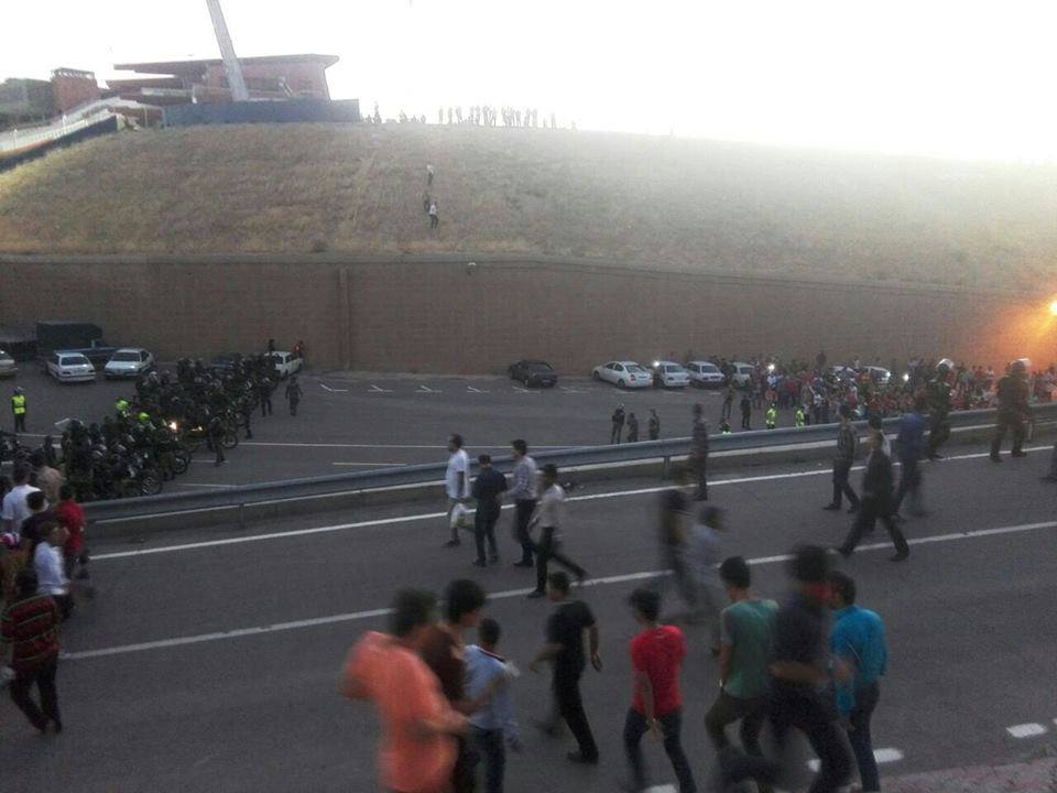 مامورین وقتی دیدند مردم یکدست شده بنر رو از کرد ها گرفته و پاره کردند و تعدادی از آنها را به بیرون ورزشگاه بردند