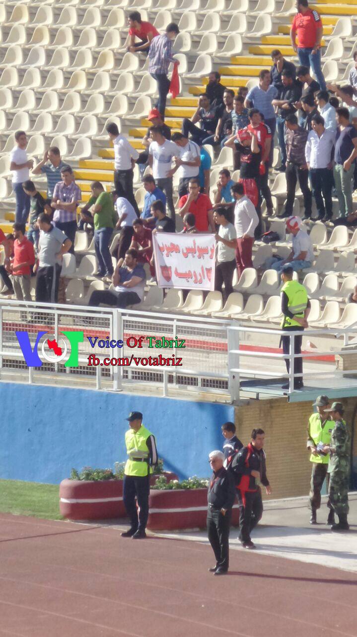 به گزارش صفحه فیس بوکی« ویس اف تبریز» در یک حرکت مشکوک سه نفر کرد در بازی روز جمعه تراختور و پرسپولیس بنرسفارشی وابسته به نیروهای امنیتی ایران به ورزشگاه سهند آورده بودند که نوشته بود «پرسپولیس محبوب اورمیه»