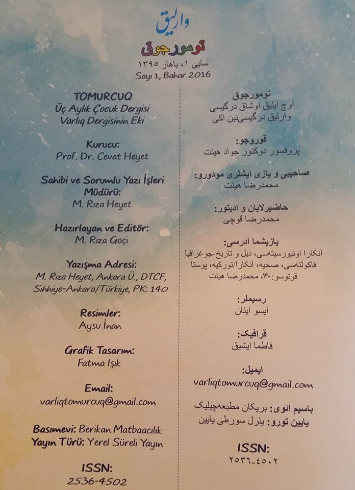 مجله «وارلیق» که از سال ۱۳۵۸ با مدیر مسئولی و سردبیری مرحوم پروفسور دکتر جواد هیئت در تهران و از سال ۱۳۹۴ با مدیر مسئولی و سردبیری محمدرضا هیئت در آنکارا بطور منظم منتشر میشود، فصلنامهای به نام «تومورجوق» به معنی جوانه مخصوص کودکان منتشر نمود.