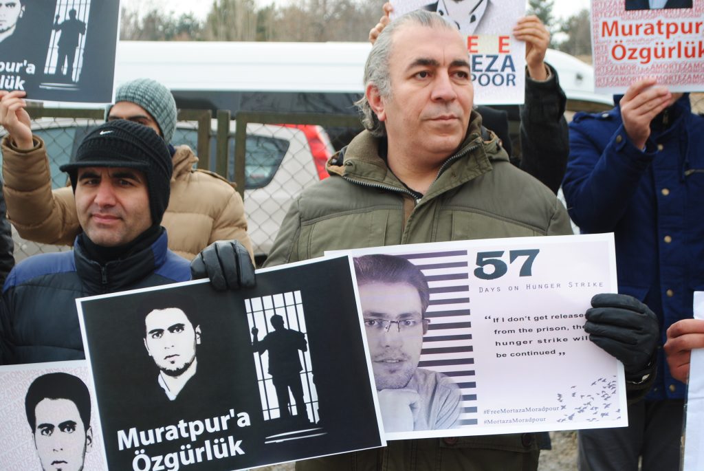 جمعی از فعالین آزربایجانی ساکن تورکیه در مقابل ساختمان مرکزی سازمان ملل در شهر آنکارا پایتخت تورکیه در حمایت از اعتصاب غذای مرتضی مرادپور و سایر زندانیان سیاسی آزربایجانی اقدام به تجمع مسالمت آمیز نمودند. شرکتکنندگان در این تجمع سکوت با حمل تصاویر مرتضی مرادپور و سایر زندانیان سیاسی آزربایجانجنوبی خواستار توجه بیشتر سازمان ملل و دیگر نهادهای بین المللی حقوقبشر به وضعیت این زندانیان گشتند. شرکتکنندگان در این تجمع با حمل تصاویر مرتبط با اعتصاب غذای مرتضی مرادپور به محکوم نمودن بیاعتنایی مسئولین قوه قضائیه جمهوری اسلامی ایران و نهادهای امنیتی در خصوص خطر جانی این زندانی سیاسی که بیش از ۵۷ روز است در اعتصاب غذا می باشد پرداختند.