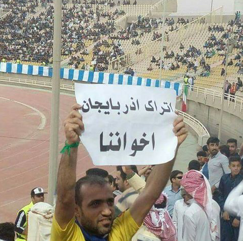 بنا به خبر ارسالی به آرازنیوز در این مسابقه فوتبال که از سری مسابقات جام قهرمانی آسیا در ورزشگاه شهید یاسر شهر احواز برگزار می گردید جوانان عرب احواز با برافراشتن شعار “تورکان آزربایجان برادرانمان هستند” محبت و وحدتشان را با تورکان آزربایجان جنوبی ابراز داشتند. در کنار این شعار که به زبان عربی و به صورت “اتراک کل أخواننا ” نوشته شده بود شعارهای دیگری چون “الأحواز سرزمین ماست و همه خلیج عربی برادرمان هستند” نیز برافراشته شده بود که باعث خشم نیروهای امنیتی حاضر در محل گردید.