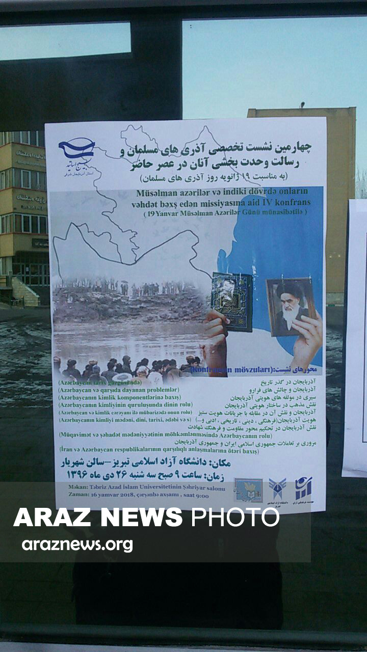 به گزارش آرازنیوز، روز سهشنبه مورخ ۲۶ دیماه ۱۳۹۶ نشستى با عنوان «نشست تخصصی آذریهای مسلمان و رسالت وحدت بخشی آنان در عصر حاضر» در دانشگاه آزاد واحد تبریز برگزار شد.