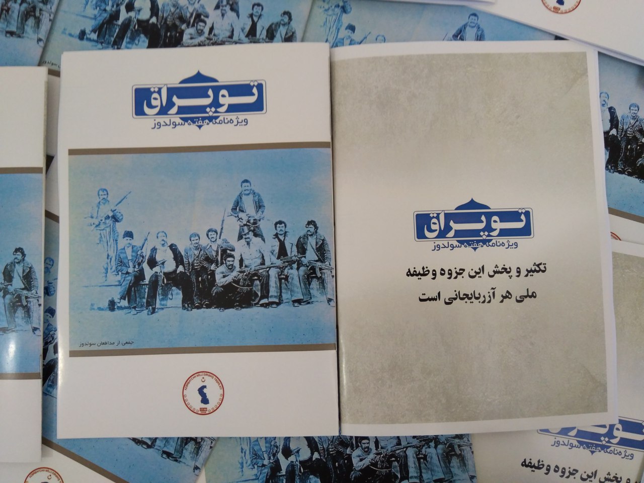 در حالی که مقامات امنیتی استان آزربایجان غربی با اعمال نفوذ محمدمهدی شهریاری (استاندار غیر بومی منتصب دولت روحانی) و نماینده مجلس غیر منتخب سولدوز با تهدید و ارعاب فعالین حرکت ملی آزربایجان، مانع برگزاری ۳۹مین سالگرد کشتار مردم سولدوز به دست گروههای تروریستی شدند، جزوههای ویژهنامه «توپراق» به مناسبت «هفته سولدوز» توسط کمیته نشر تشکیلات مقاومت ملی آزربایجان (دیرنیش) منتشر و در شهرهای غرب آزربایجان توزیع شد.