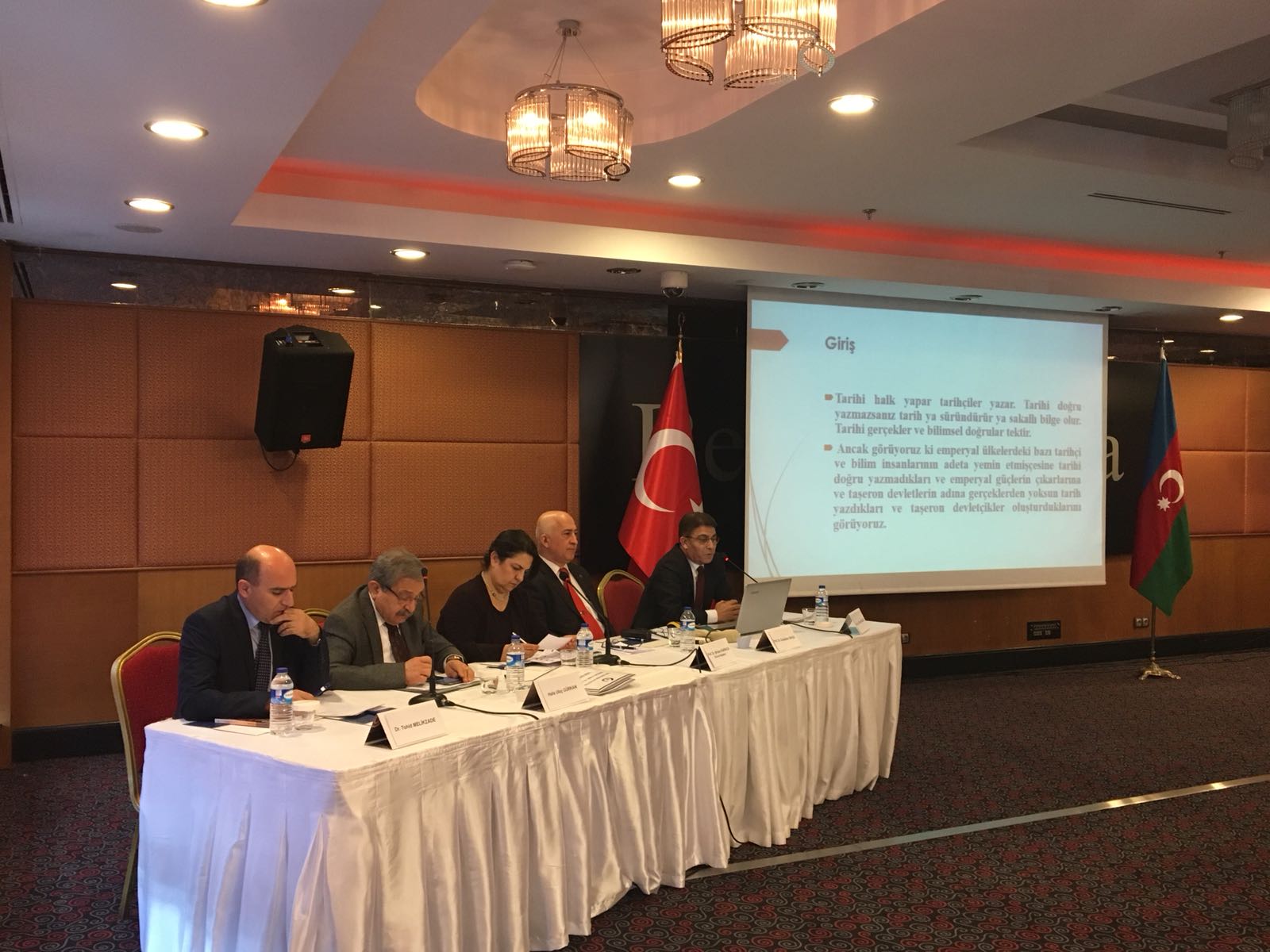 پس از سخنرانیهای آغازین، نشست نخست با مدیریت پروفسور دکتر بیرسَن قاراجا مدیر گروه رشته زبان و فرهنگ ارمنی دانشگاه دولتی آنکارا آغاز گشت. در نشست نخست آقای خالص اولوچ گورکان نماینده سابق مجلس ملی تورکیه و از روزنامهنگاران باتجربه تورکیه که سابقه همکاری با روزنامههایی چون جمهوریت، صاباح، استار و گونش را دارد با موضوع “دادرسی مالتا”، آقای پروفسور دکتر جلال الدین یاووز عضو هیئتعلمی دانشگاه آوانسارای استانبول و جانشین رئیس دانشکده اقتصاد و علوم اداری این دانشگاه با موضوع “گزینه نظامی در حل مسئله قاراباغ”، دکتر دوران بلبل عضو هیئتعلمی دانشگاه غازی آنکارا با موضوع “بررسی حقایق مالی و اقتصادی قتلعامها و قتلعام تورکان توسط ارامنه” و دکتر توحید ملکزاده با موضوع “قتلعام صورت گرفته در آزربایجان ایران در جنگ جهانی اول بنا به اسناد آرشیوی ایران” به بیان دیدگاههای خود و بررسی علمی موارد یادشده پرداختند.