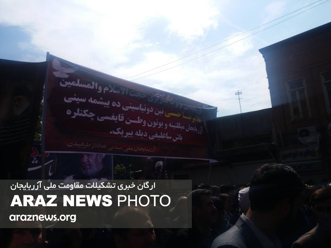 فعالین ملی-مدنی و مردم حاضر در این مراسم با تهیه بنرهای تسلیت به زبان تورکی شعارهایی به زبان تورکی برای محکومیت تروریسم و دفاع از هویت و خاک آزربایجان سر دادند.