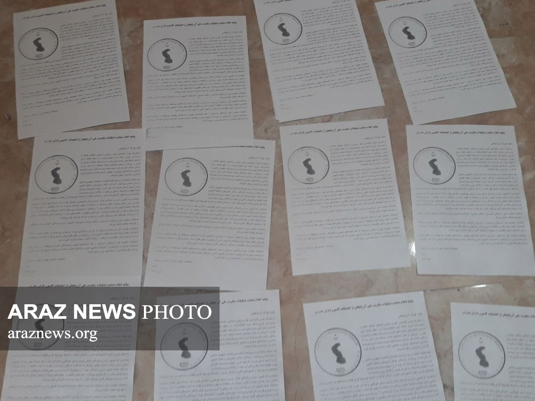 پخش بیانیه تشکیلات مقاومت ملی آزربایجان در شهرهای آزربایجان جنوبی