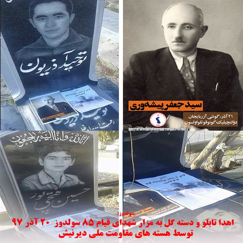 به گزارش آرازنیوز از سولدوز در ۷۳ مین سالگرد تشکیل حکومت ملی آزربایجان به رهبری سید جعفر پیشهوری هستههای مقاومت تشکیلات دیرنیش بر سر مزار شهدای این شهر حاضرشده و با اهدا گل و پوستر منقش به آرم تشکیلات دیرنیش یاد آنان را گرامی داشتند.