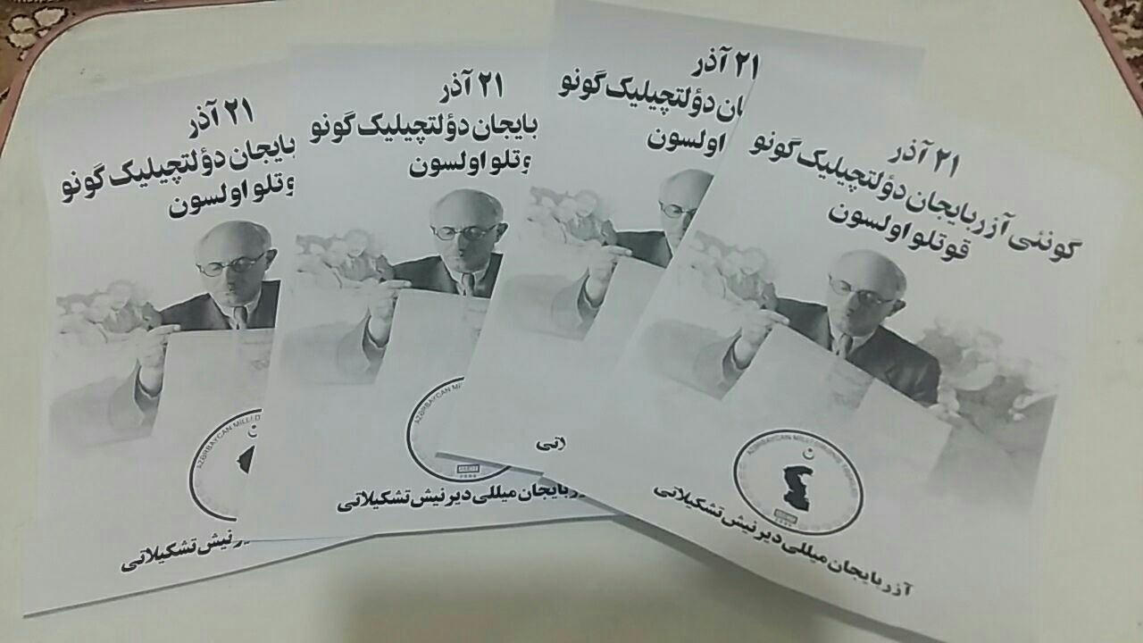 به گزراش آرازنیوز از تبریز هسته های مقاومت تشکیلات دیرنیش در سردری و تبریز به منظور زنده نگاه داشتن یاد و خاطره حکومت ملی آزربایجان اقدام به پخش گسترده شب نامه کردند.