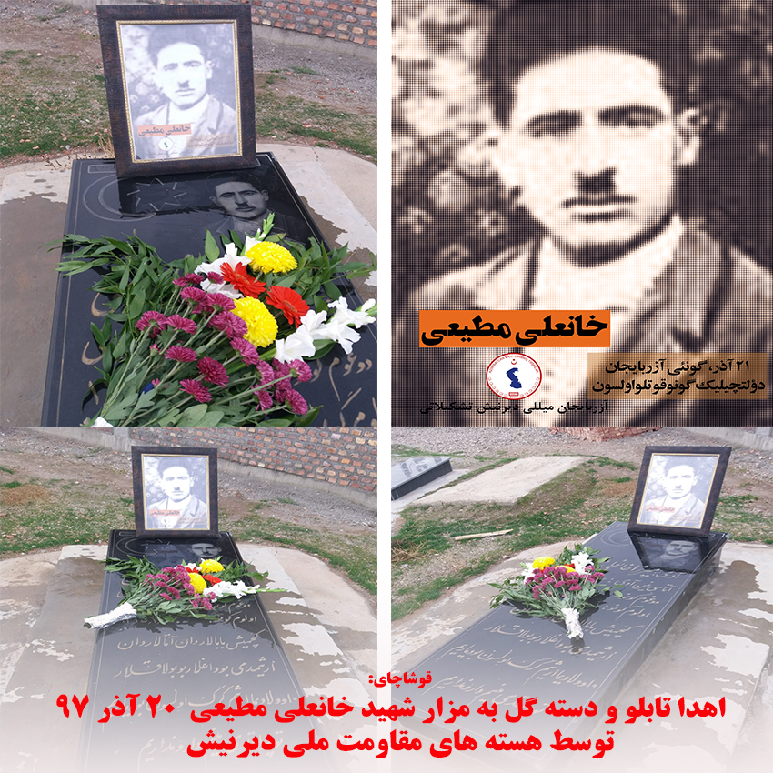 هستههای مقاومت ملی آزربایجان دیرنیش در شهر قوشاچای(میاندوآب) به مناسبت فرارسیدن ۲۱ آذر بر سر مزار خان علی مطیعی از شهدای حکومت ملی حاضر گشته و تابلوی یادبود تشکیلات را تقدیم کردند.
