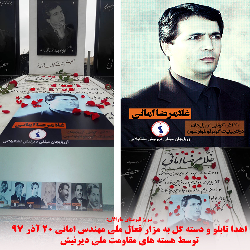 هستههای مقاومت ملی آزربایجان در شهر تبریز به مناسبت فرارسیدن ۲۱ آذر بر سر مزار مرحوم مهندس امانی حاضر گشته و تابلوی یادبود تشکیلات را تقدیم کردند.