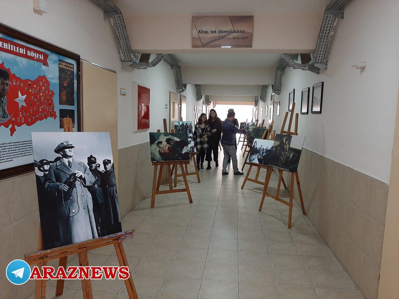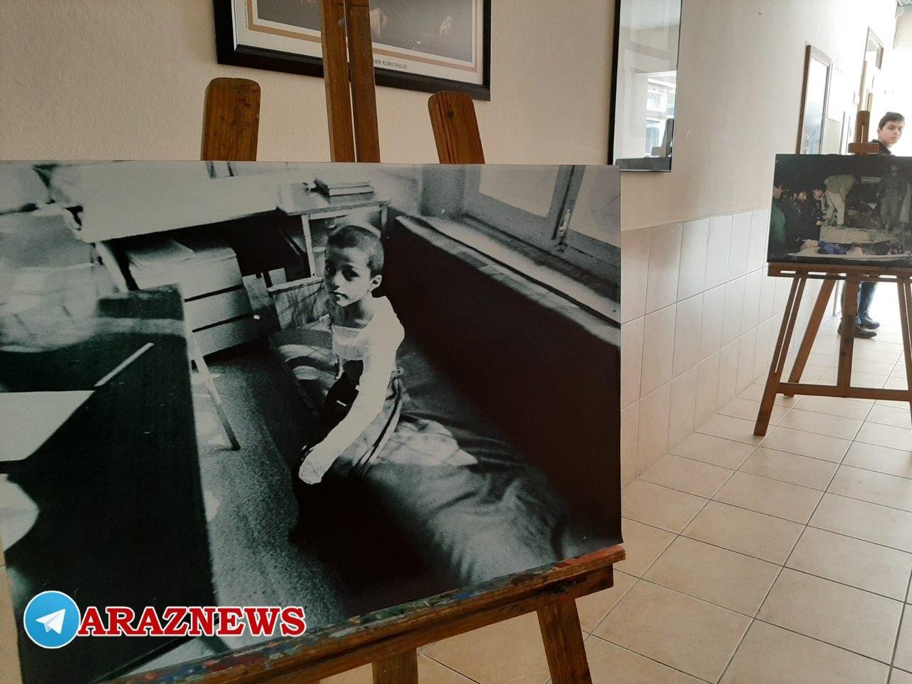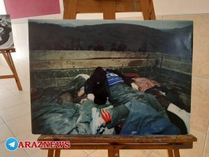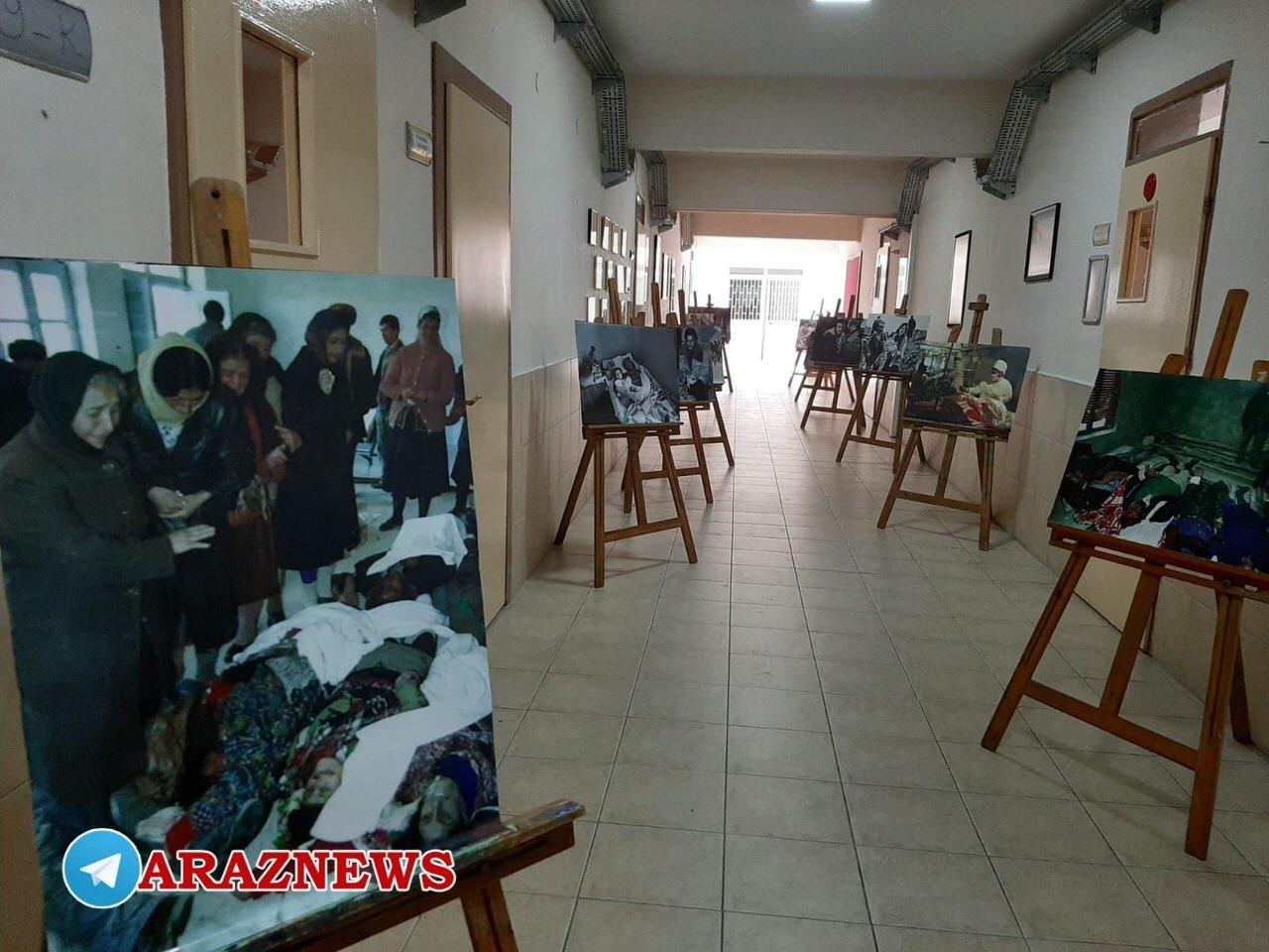 نمایشگاه عکس شامل تصاویری از فاجعه نسلکشی خوجالی بوده که با به نمایش گذاشته شدن تصاویری حقیقی از این فاجعه عمق این جنایت و مظلومیت خوجالی برای دانشآموزان نمایان شد.