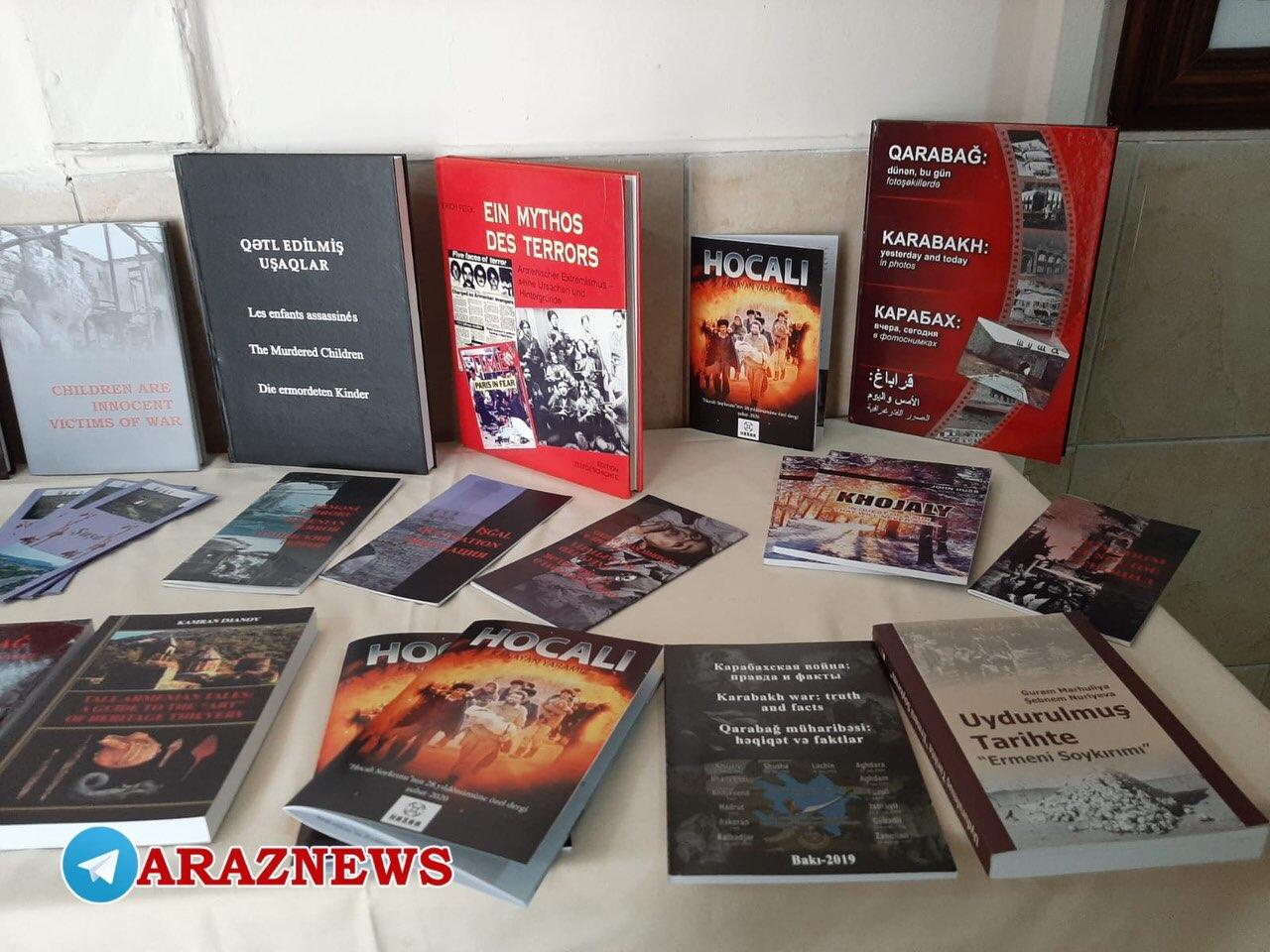 همچنین در این نمایشگاه کتابهایی در خصوص نسلکشی خوجالی که به زبانهای مختلف جهان نوشته شدهبود نیز به نمایش گذاشته شد.