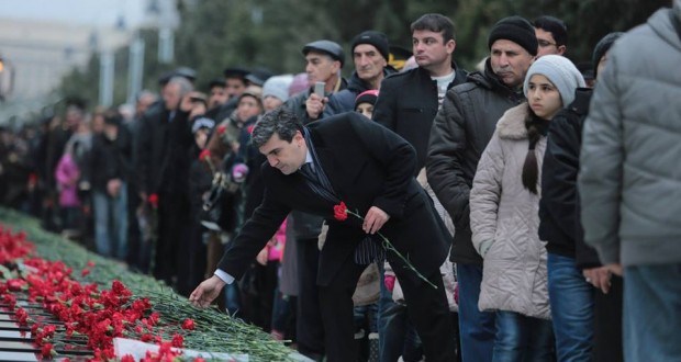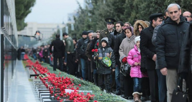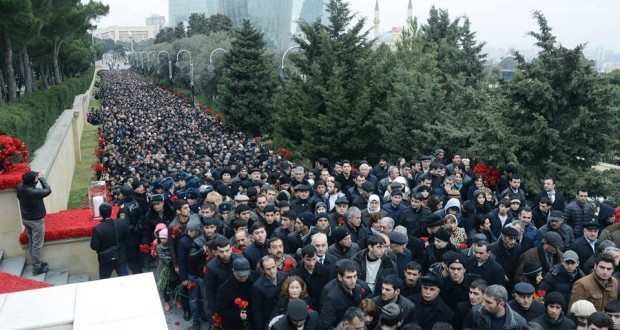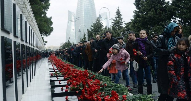 هزاران نفر از مردم باکو با حضور در مزار شهدای ۲۰ یانوار در این شهر سالگرد قیام این روز را سال ۱۹۹۰ گرامی داشتند. صبح دیروز همچنین الهام علی اوف رئیس جمهور آذربایجان شمالی همراه با اعضای هیئت دولت، سران ارتش و … با گذاشتن دسته گل یاد شهدای استقلال آزربایجان را گرامی داشتند .