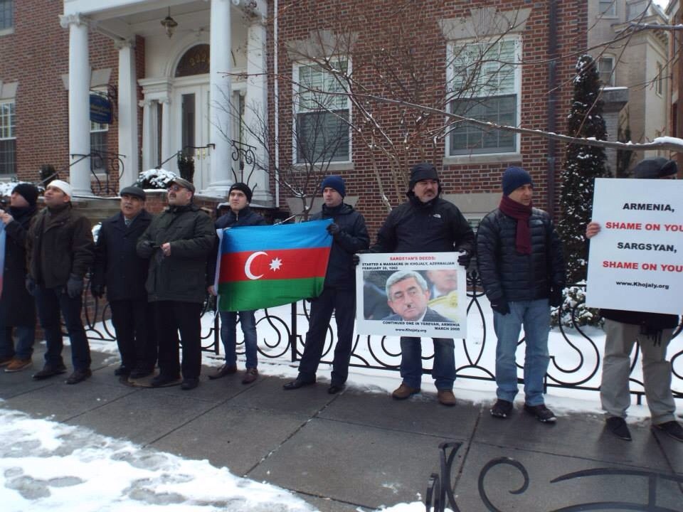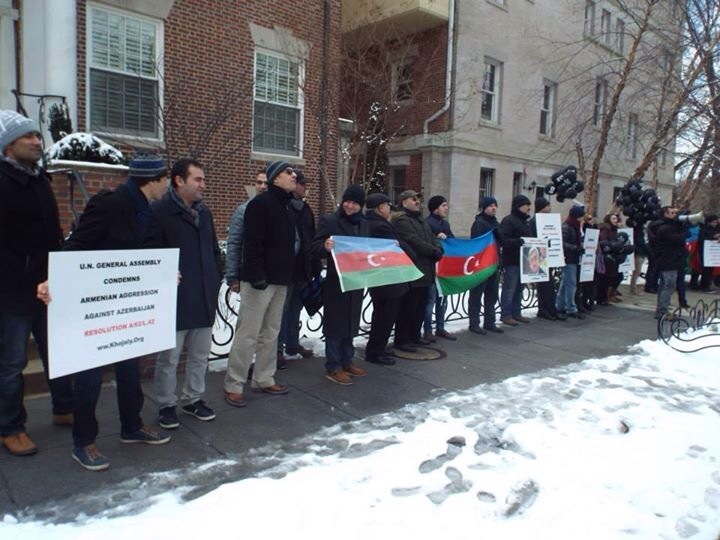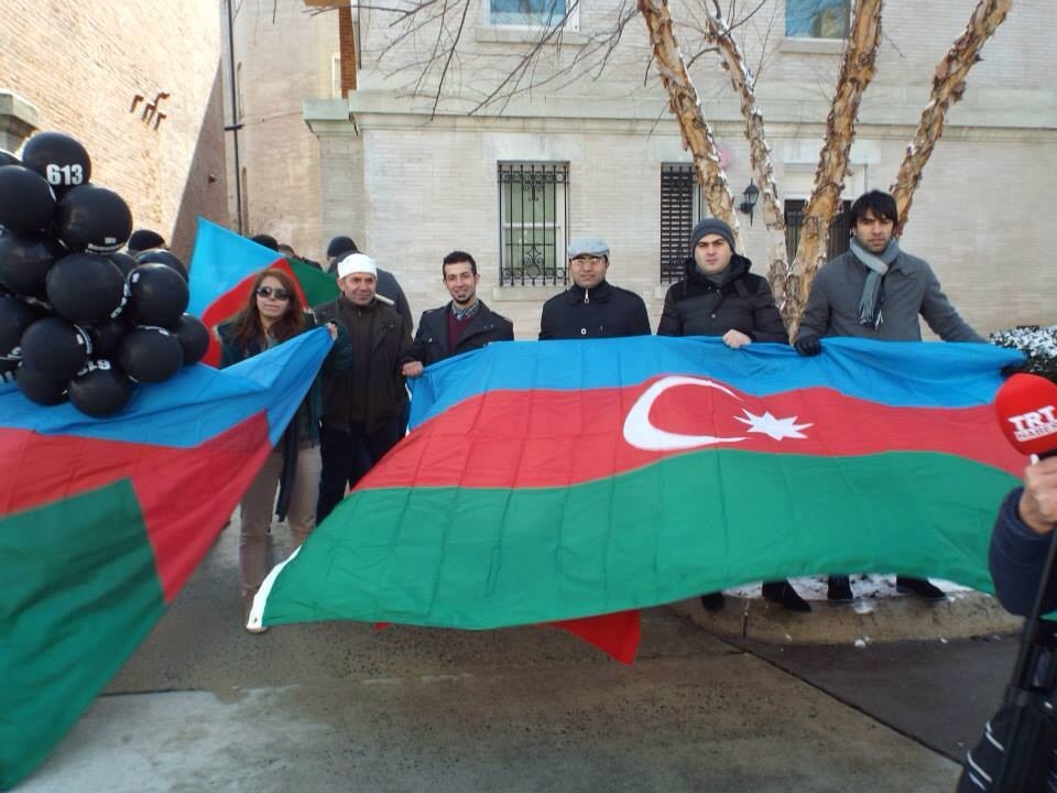 آنا ديلى ائيلميندن همن سونرا قوزئيلى هموطنلرله برابر ارمنستان ائلچيليگى اونونده خوجالى سويقيريمنى پروتستو ائتديلر.