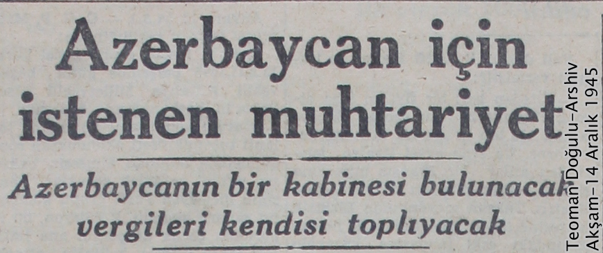 اما در شماره روز جمعه چهاردهم دسامبر مصادف با 23 آذرماه 1324 ، مطالبه ی حق خودمختاری آزربایجان در روزنامه ی آکشام منعکس شد.در این شماره روزنامه آکشام به نقل از خبرنگار رویترز می نویسد: خبرنگار رویترز در تهران مشاهدات یک خارجی را از اوضاع آزربایجان نقل میکند. بنا بر مشاهدات این فرد خارجی از آزربایجان؛ فرقه دموکرات آزربایجان خواستار خودمختاری برای آزربایجان در چارچوب دولت ایران و حاکمیت شاه می باشد. آزربایجان دارای یک کابینه دولت به استثنای وزارت خارجه خواهد بود و بنابراین مالیات و درآمدهای آزربایجان را جمع آوری و اداره خواهد نمود.