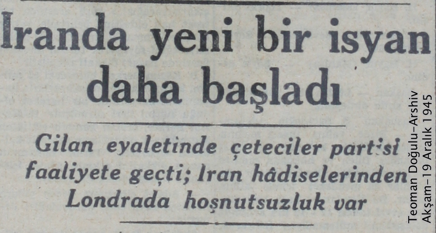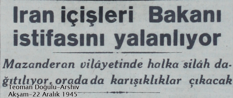 شماره روز سه شنبه 18 دسامبر برابر با 27 آذرماه 1324، روزنامه آکشام موضوع حکومت کردها را با “مسئله کرد” تعبیر و آن را مشکل ساز تر از مسئله آزربایجان بیان کرده و می نویسد : “آخرین خبرهای رسیده از ایران بر نگرانی ها می افزاید. بعد از مسئله ی آزربایجان اینبار مسئله کردها به میان آمده است. به نظر می رسد بنا به اقداماتی که از سوی کردها صورت می گیرد مسئله کرد در ایران به مراتب خطرناک تر از آزربایجان باشد.”